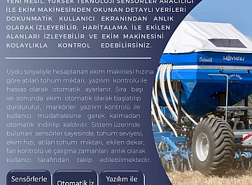 Saatlik 60 dönüm ekme kapasitesiyle Türkiye'de üretilen en büyük ekim makinası.